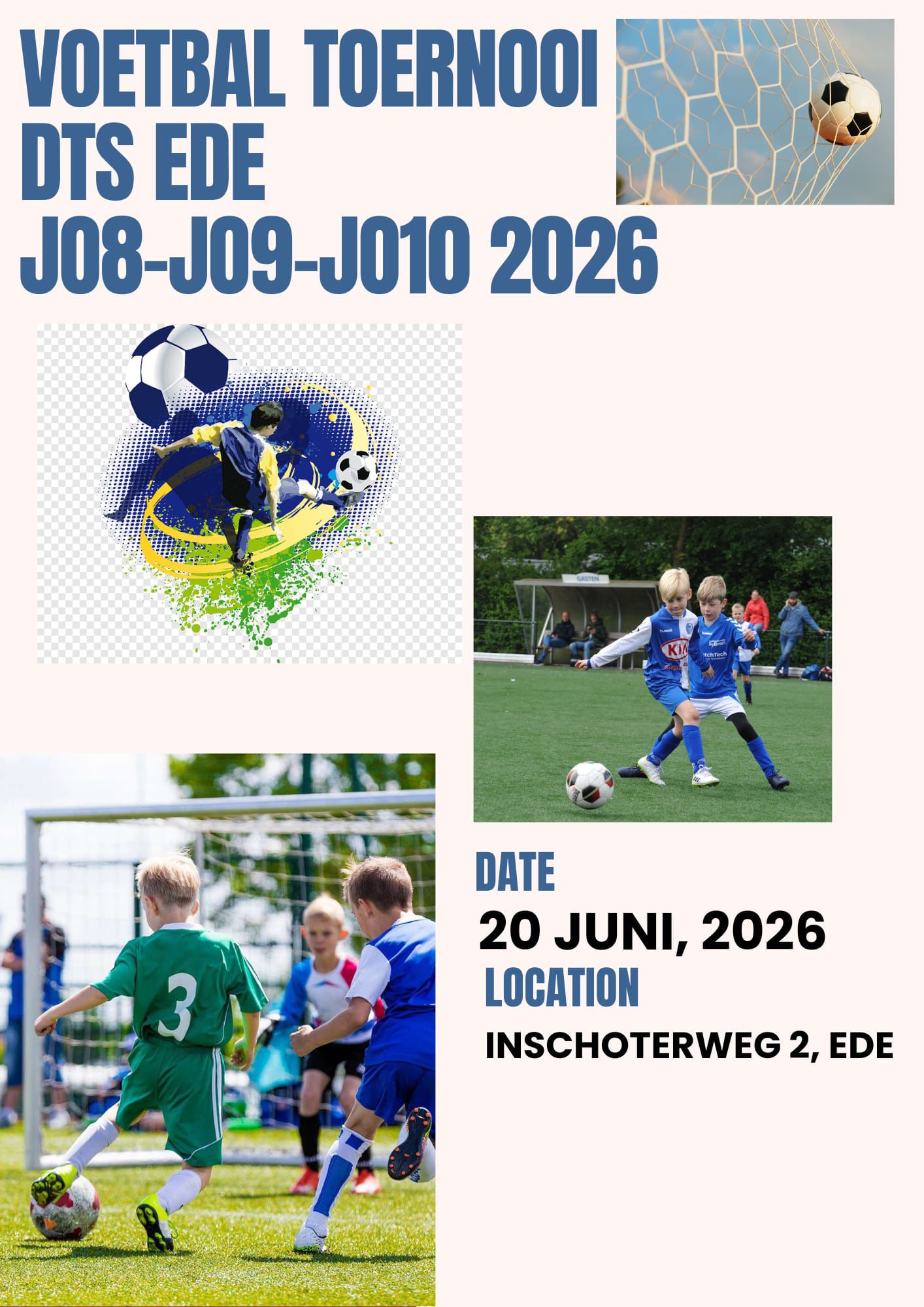20 juni 2026 organiseert DTS Ede het JO8-JO9-JO10 voetbaltoernooi. Inschrijven voor teams is mogelijk via de volgende link: www.tournify.nl/live/dtsede89102026